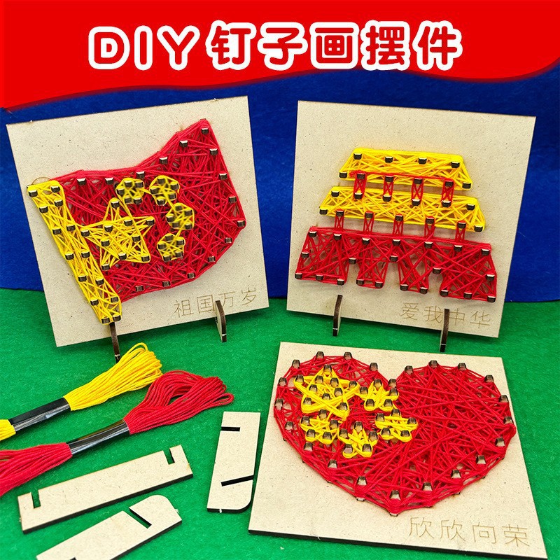 子供の手作り DIY 木製安全釘巻き絵画材料パッケージ幼稚園親子活動織りテーブル装飾品