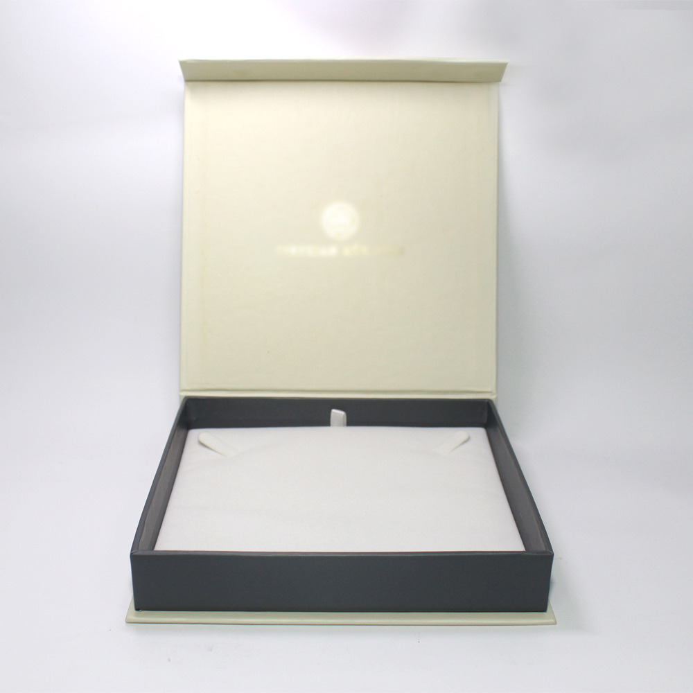 源工場にロゴを加えた新しい高級ベージュ直角充填紙カバーの首飾り箱のネックレス箱はカスタマイズ可能です