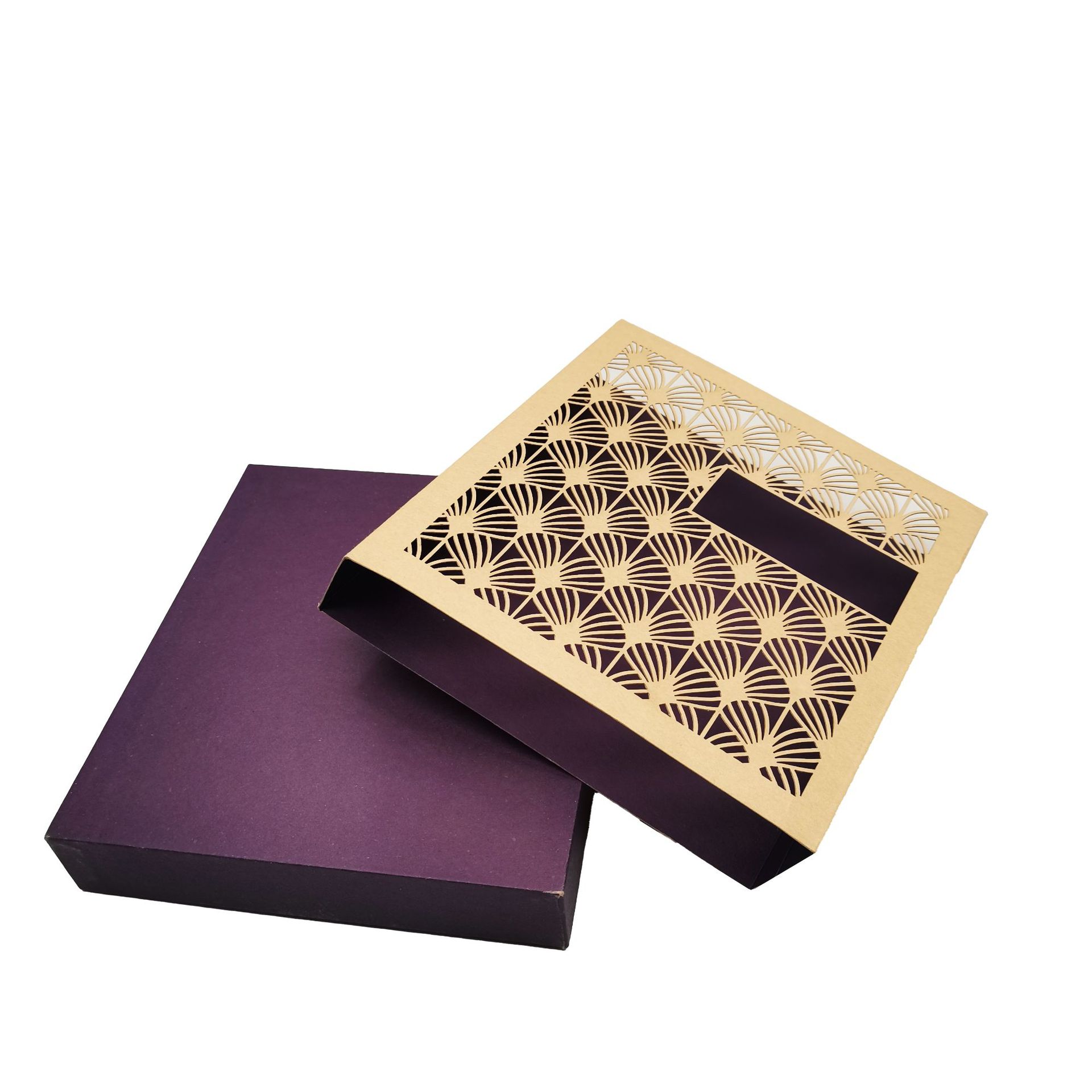 チョコレート包装天地蓋ギフトボックス特殊紙紙紙紙紫色天地蓋ギフトボックス正方形透かし彫り