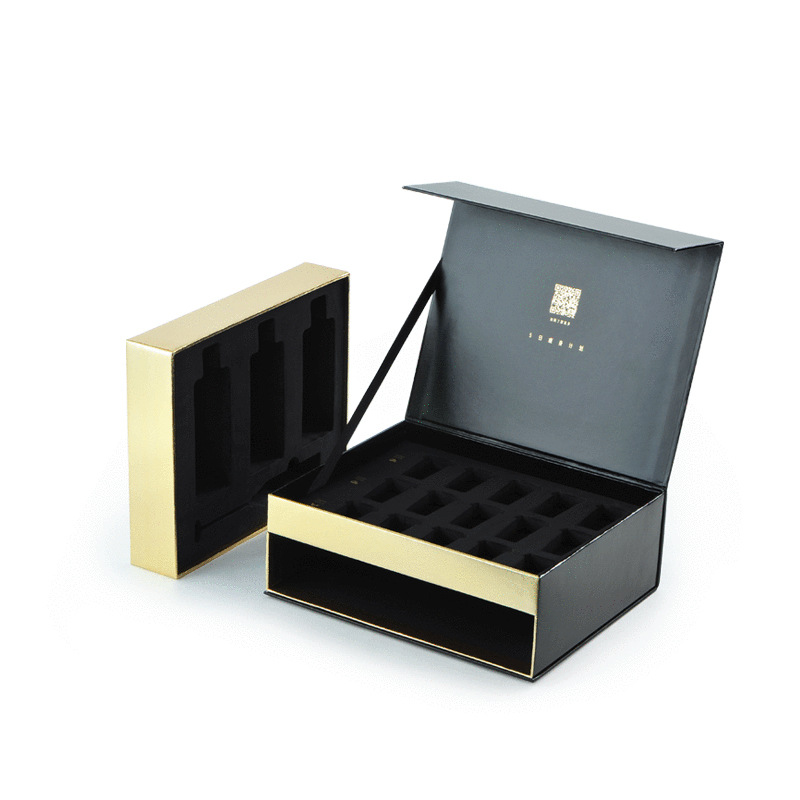 高級箔押しの両手のギフトボックスの明るい膜香水の包装箱精油スキンケアギフトボックスはカスタマイズ可能です