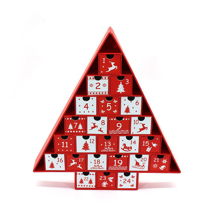 カスタマイズされたクリスマスカウントダウンカレンダー包装箱赤印刷クリスマスツリー形状ギフト箱空箱クロスボーダー