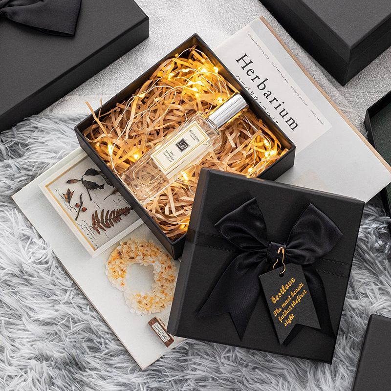 黒蝶結びギフトボックス現物天地蓋長方形祝日ギフトカップ香薫誕生日プレゼント包装