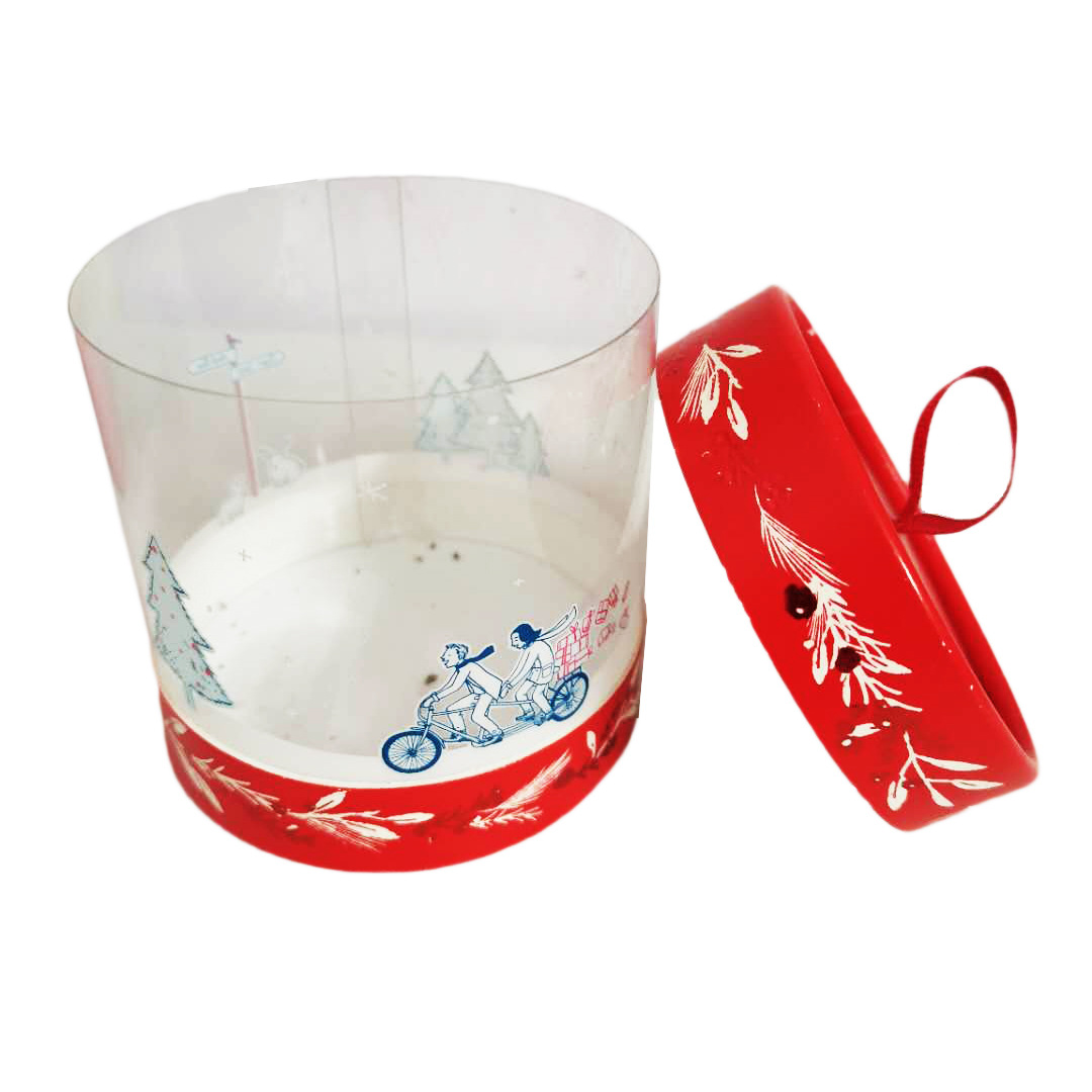 クリスマス用アップルバレル包装ボックスpvc円筒紙蓋クリスマスイブギフト包装透明ラウンドボックス印刷パターン