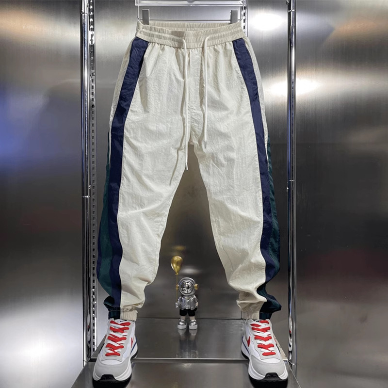 2024 メンズ夏薄型スプライシングレギンスカジュアルパンツ弾性ウエスト小脚パンツトレンディな新しいハーレムパンツ