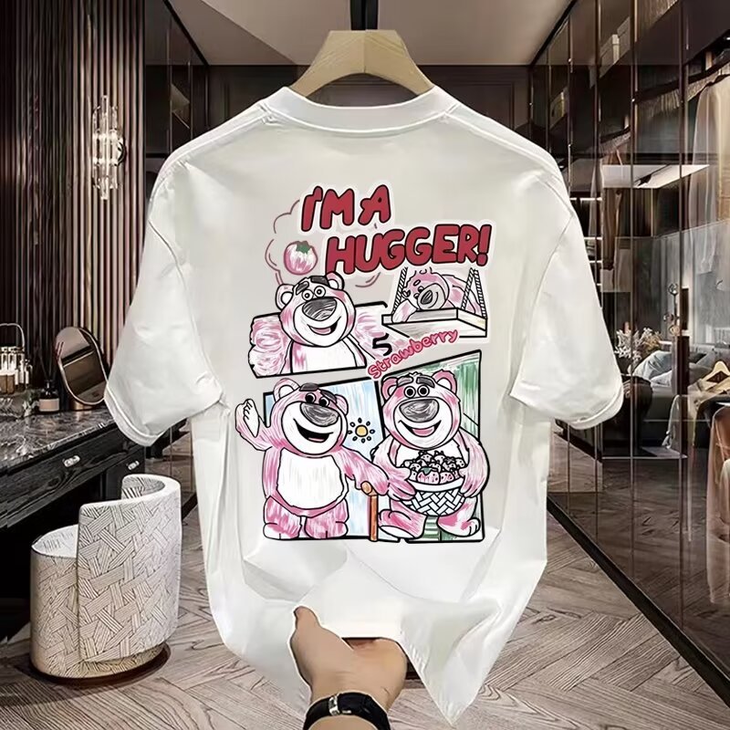2024 夏の新ファッションブランドイチゴクマプリントカジュアル半袖メンズルーズで多用途のファッショナブルな半袖 Tシャツトレンディな t