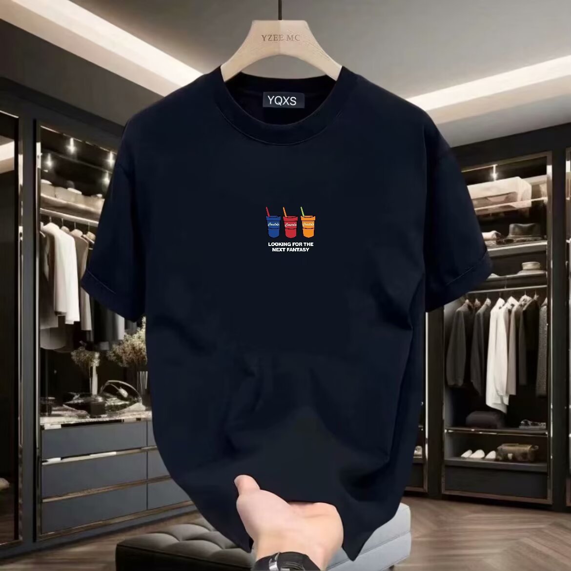 コットン夏新作メンズ楽しいプリントパーソナライズされたラウンドネックスリム半袖Tシャツメンズレター半袖Tシャツ多用途