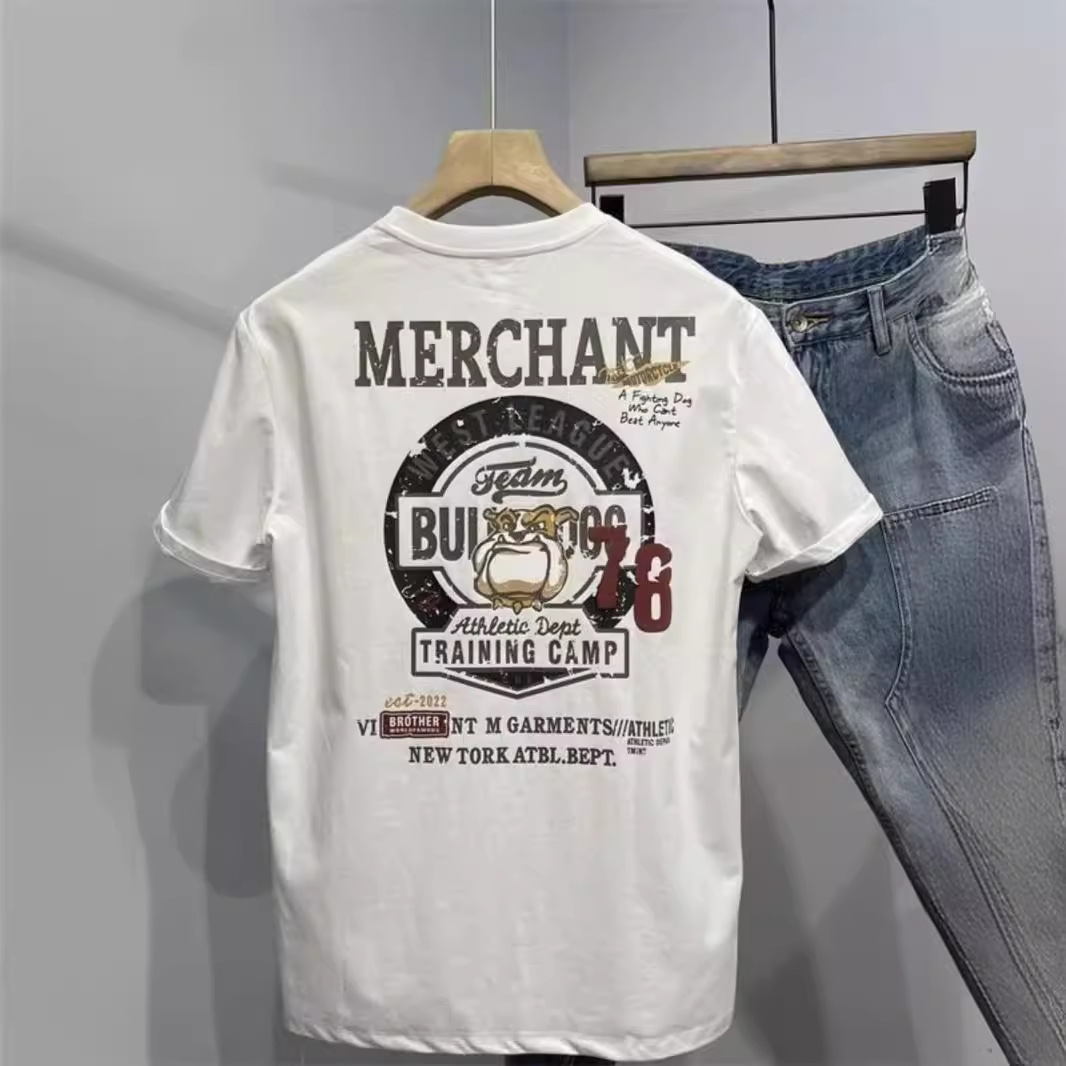 白い Tシャツメンズ夏の新しいトレンディなプリント Tシャツアメリカンライト高級新疆綿半袖 Tシャツ
