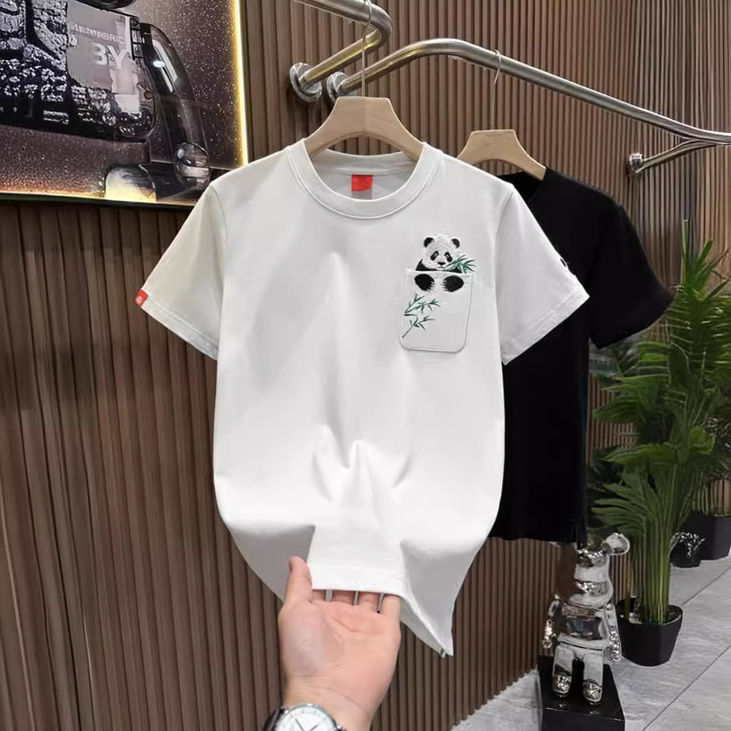 2024 夏の新パンダ半袖 Tシャツメンズトレンディなファッションカジュアル Tシャツルーズ半袖トップ