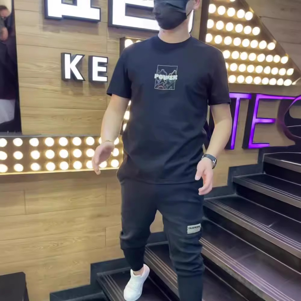 ヨーロッパステーション半袖 Tシャツメンズ 2024 夏のトレンディなブランドプリントラウンドネック純綿シンプルなトップストレンディなカジュアル紳士服