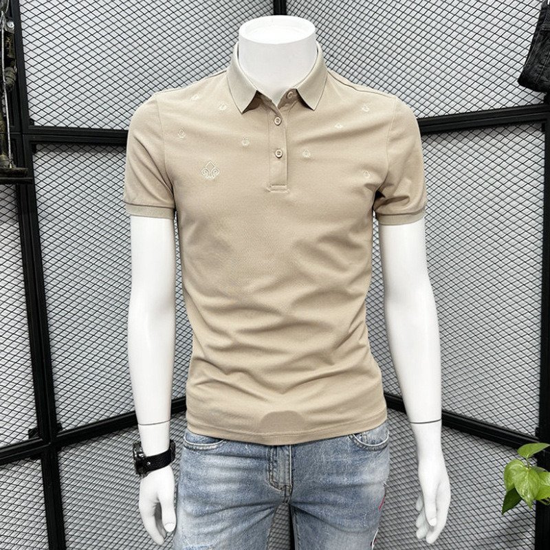 プリントシルケットコットンポロシャツメンズ半袖Tシャツ夏ヨーロッパ新作スリムラペル襟付きTシャツトップ