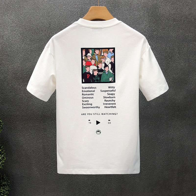 2024 トレンディなメンズコットンクラフト半袖漫画ルーズ通気性多用途若者半袖トップス