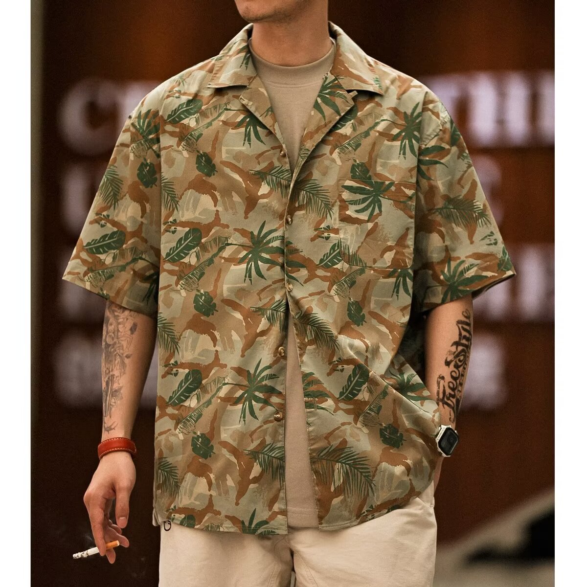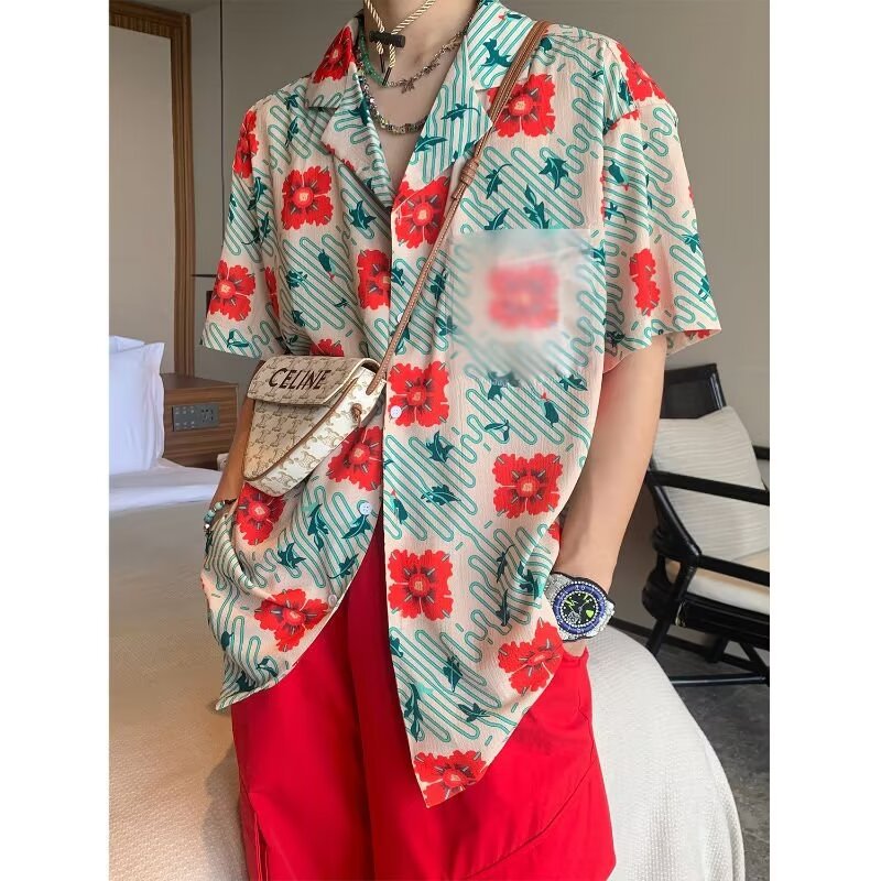 アメリカンスタイルのキューバ襟シャツ メンズ 半袖 アイスシルク 薄手 ハワイ風 ゆったり カップル向け 花柄シャツ 多用途 カジュアル