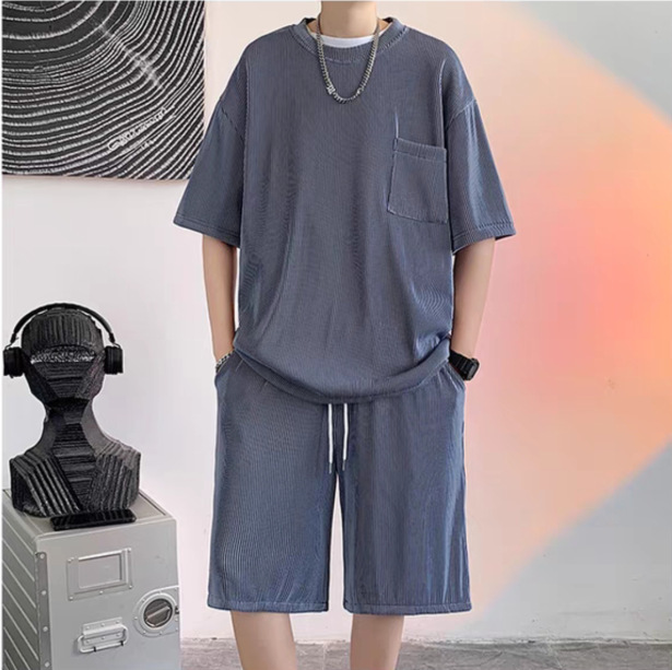 アイスシルクスポーツショーツスーツメンズ 2023 夏薄いカジュアル半袖ショーツメンズ速乾性服セット