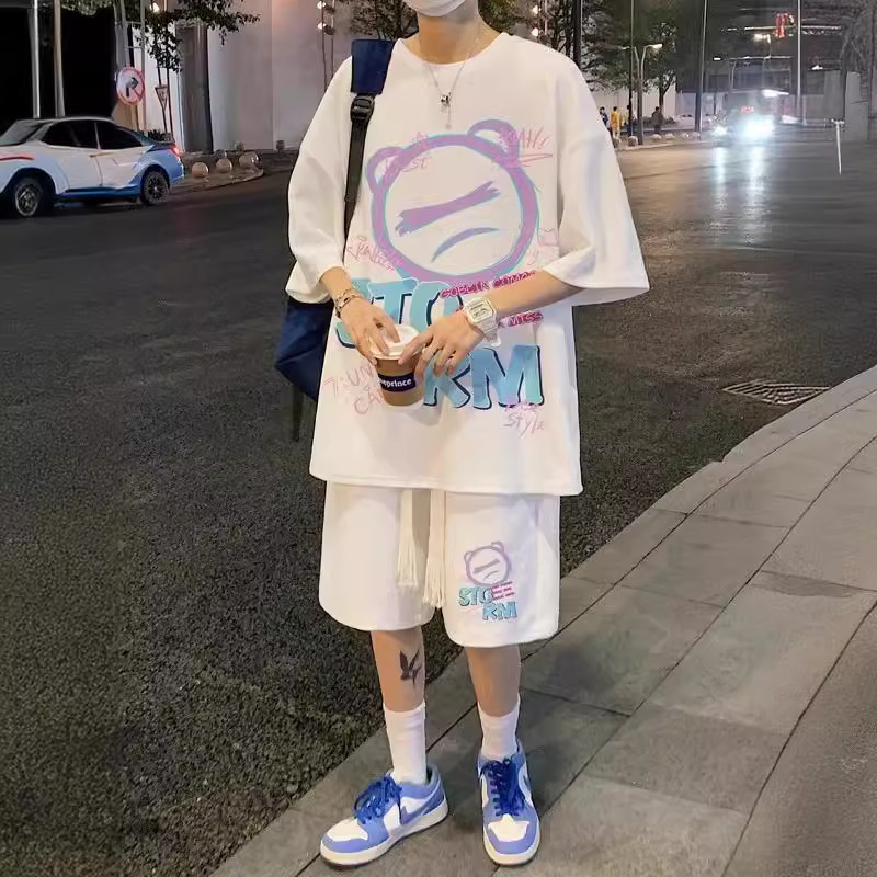 国潮熊セット男性夏青少年ファッション半袖半ズボンカジュアルスポーツファッションクールかっこいい男性服