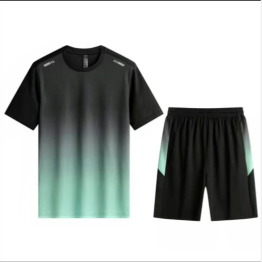 速乾衣半袖半ズボンセットメンズ夏グラデーションtシャツ上着ランニングゆるいカジュアルスポーツ2点セット