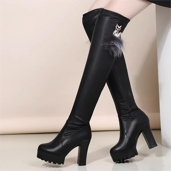 ファッションブーツ卸売り2023秋冬の新型黒で痩せている保温ドリルの毛の高さと弾力性が膝を越えたブーツの女性