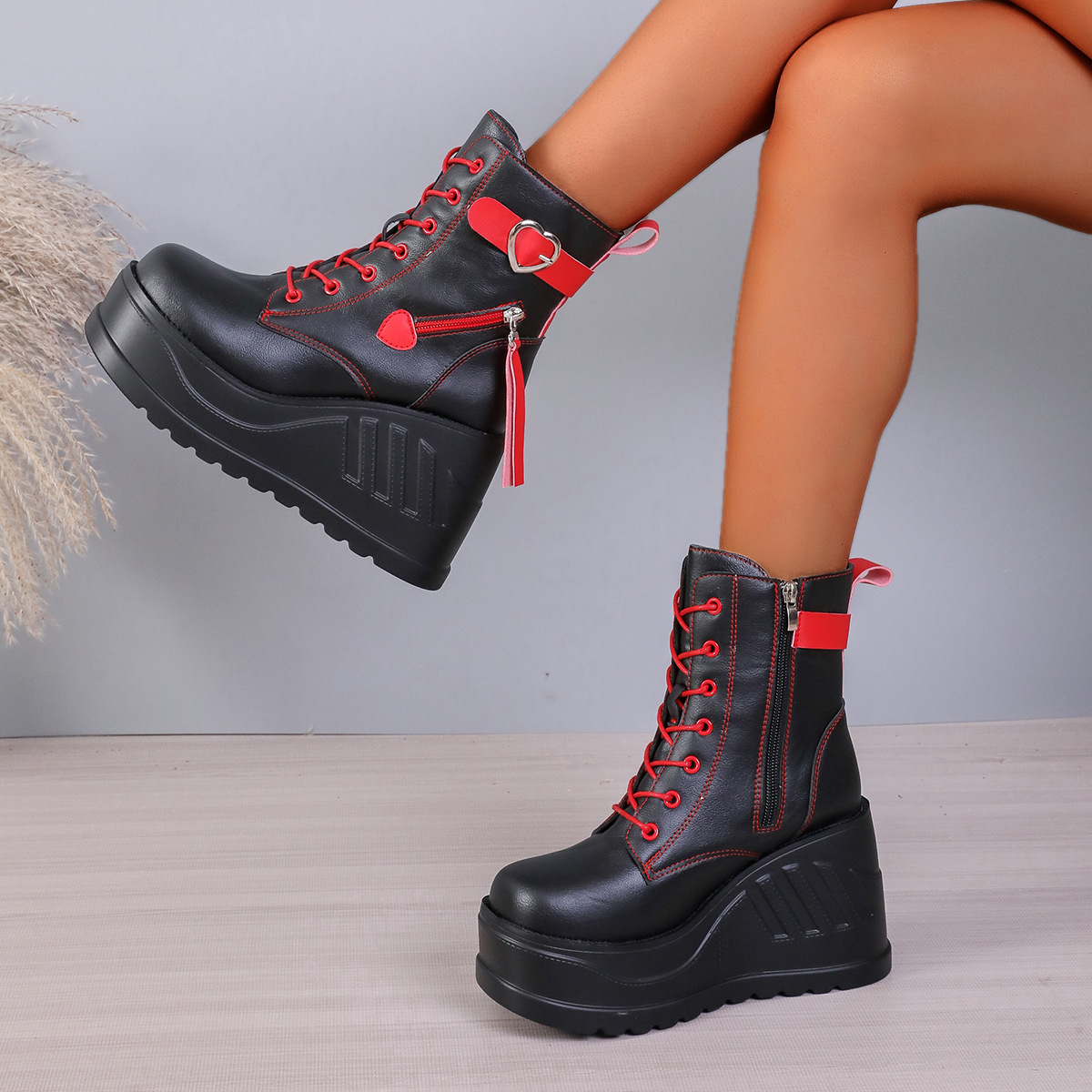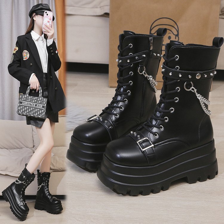 大きいサイズの厚い底のマーティンの靴の女性の英倫の風の太さと小さい背が高くなります。
