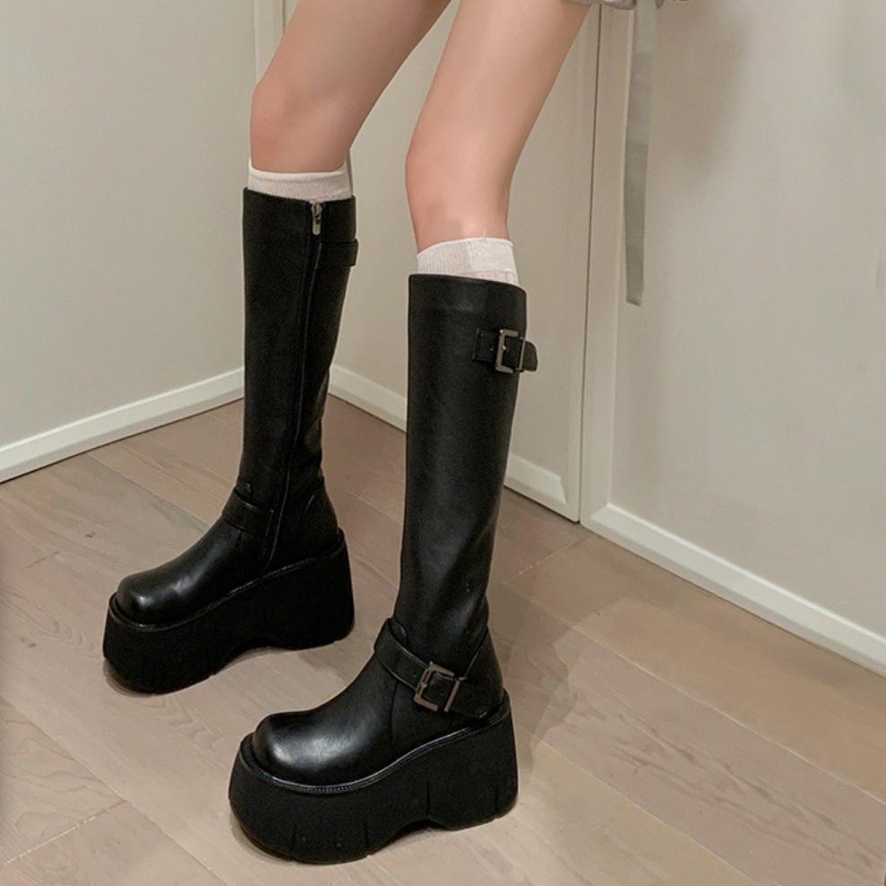 ブーツの女性の厚い底の騎士の靴の2024新型のブーツの潮のハイヒールの小さい子のブーツ
