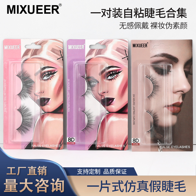 クロスボーダーつけまつげ2ペア、濃密でカールした自然なつけまつげ、欧米風黒軸、接着剤不要つけまつげ卸売