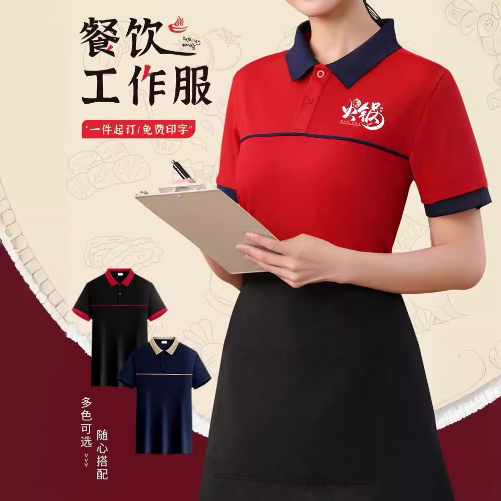夏に飲食サービスマンの作業服半袖tシャツホテルレストラン火鍋店バーベキュー店