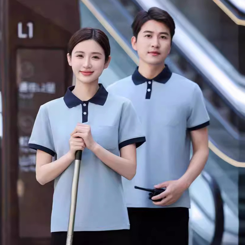 清掃員t作業服半袖夏tシャツ男女不動産客室デパート病院清潔おばさん清潔服