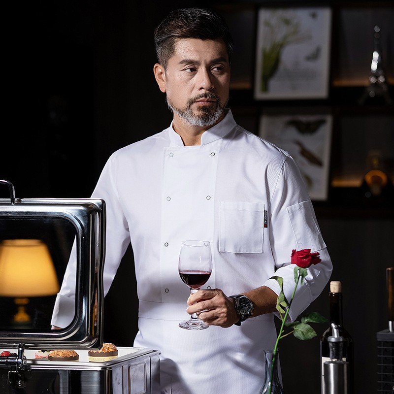 シェフ作業服男性長袖ホテル食堂焼きケーキ店キッチン作業服大サイズ工服刺繍