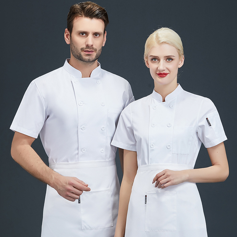 シェフ作業服男性半袖飲食ホテルケーキ店キッチン女性白色夏長袖工装