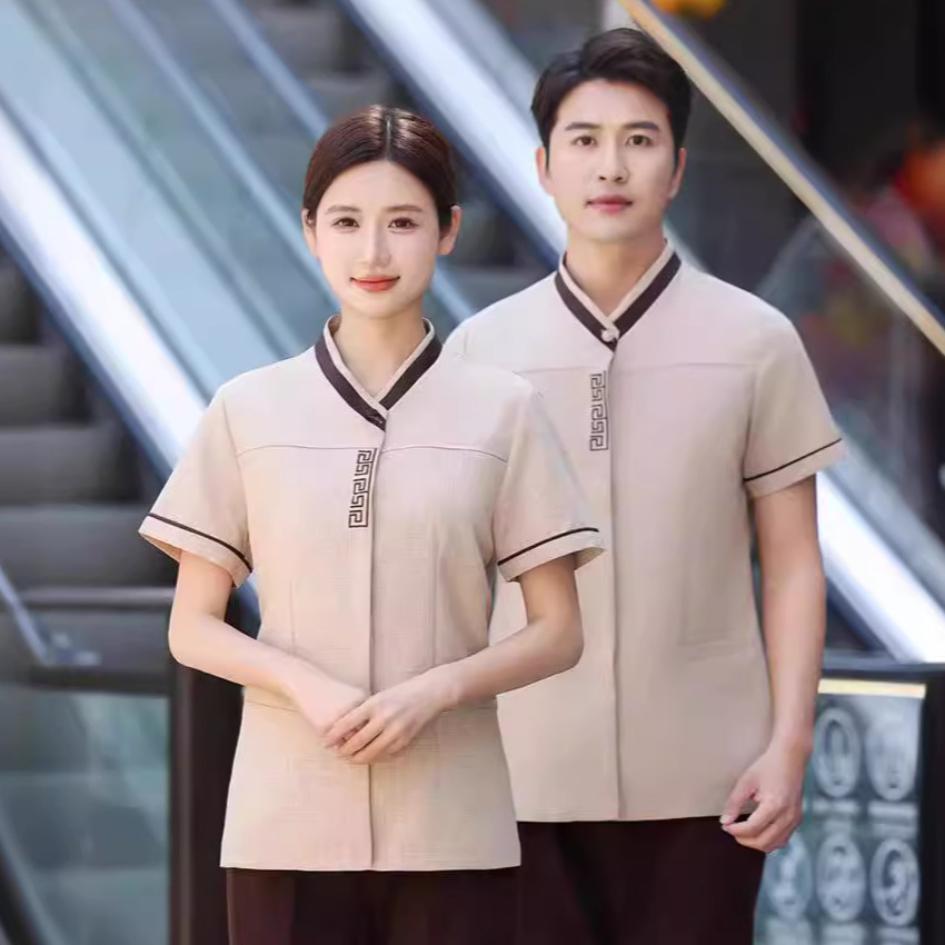 飲食サービスマン作業服半袖夏ホテルバーベキューレストラン工装半袖レストラン工服服装tシャツ