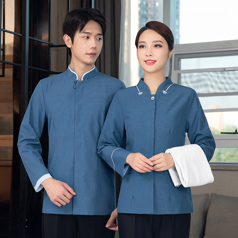 ホテルの青い清潔作業服長袖女性秋冬スーツデパートの客室の不動産清潔おばさん服の大きいサイズ