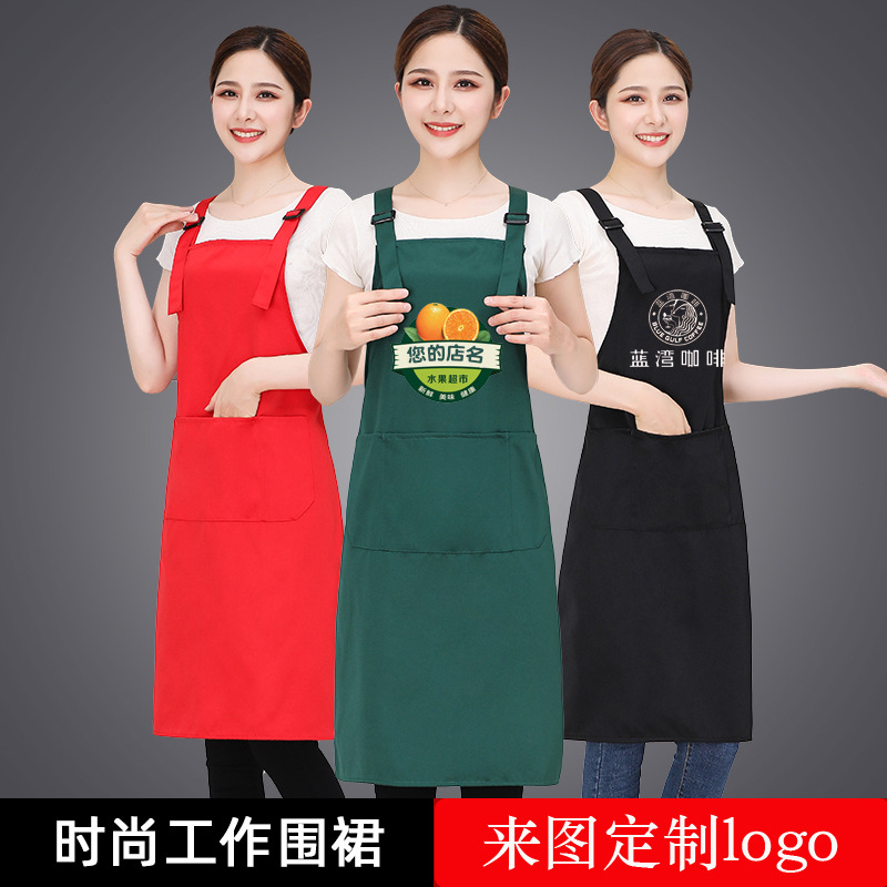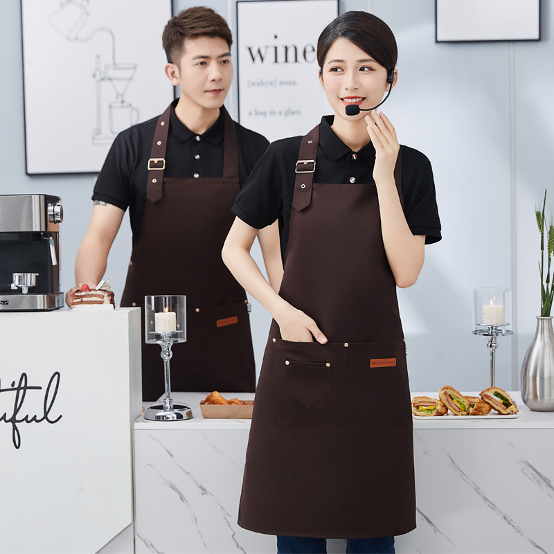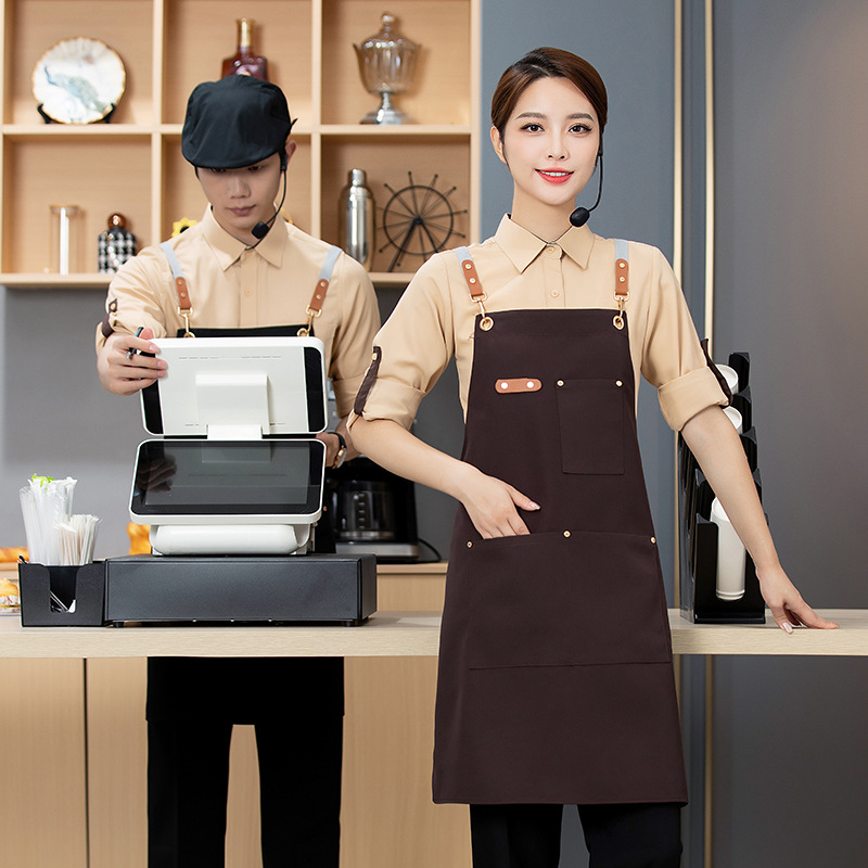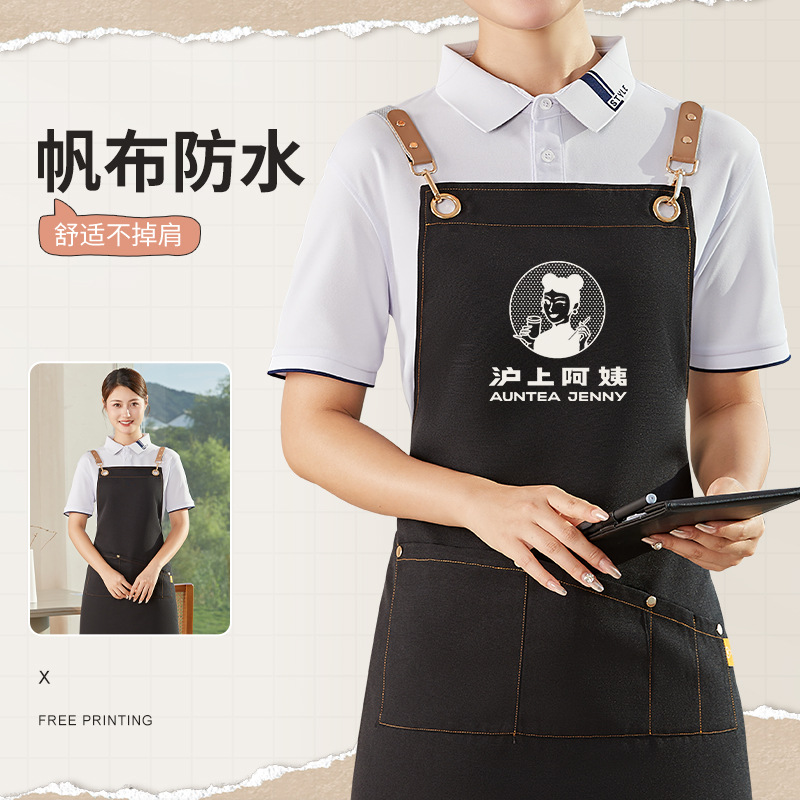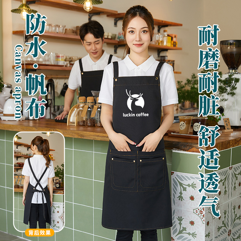 キャンバス防水防油ファッションエプロンロゴ印字ホテル飲食専用コーヒーミルクティー作業服女性印刷