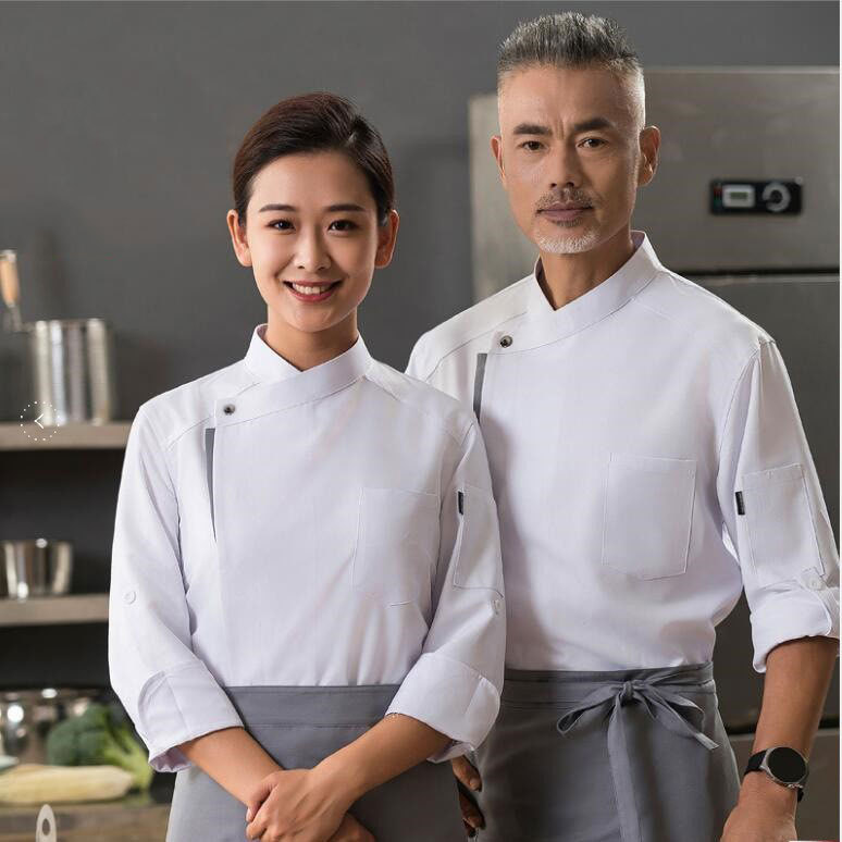 飲食チェーンホテルのキッチンレストランの明段料理人の作業服男性長袖レストランの工装女性は秋冬に大きくなります。