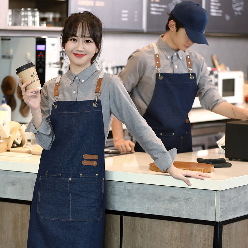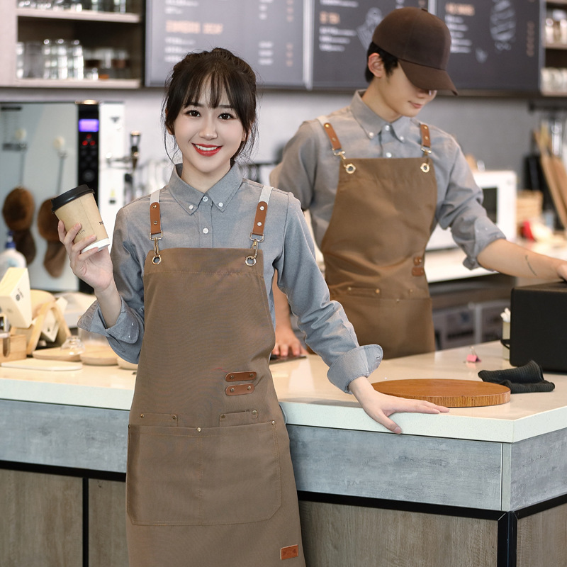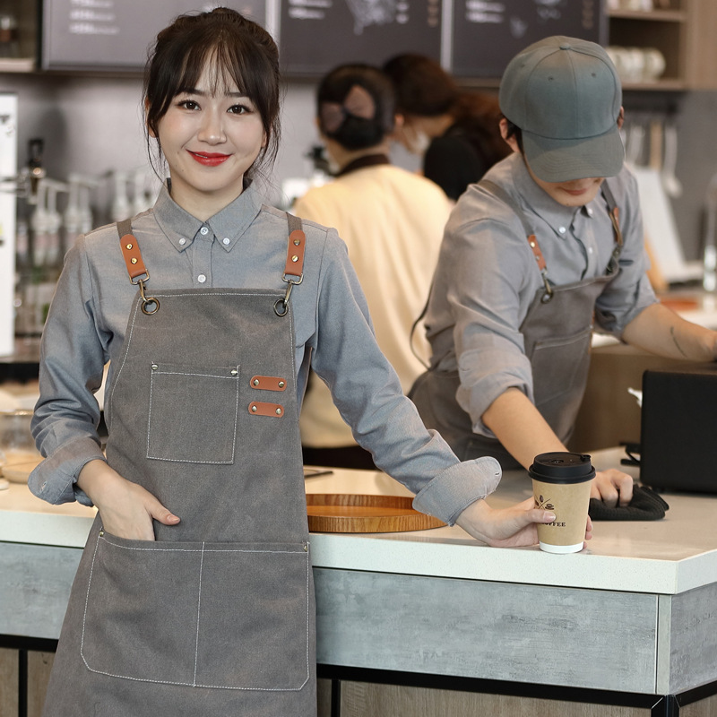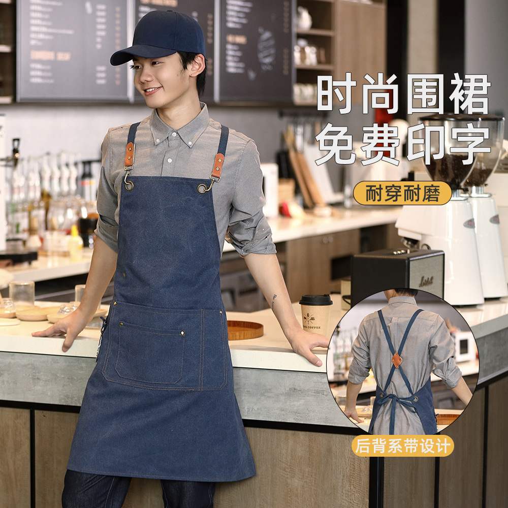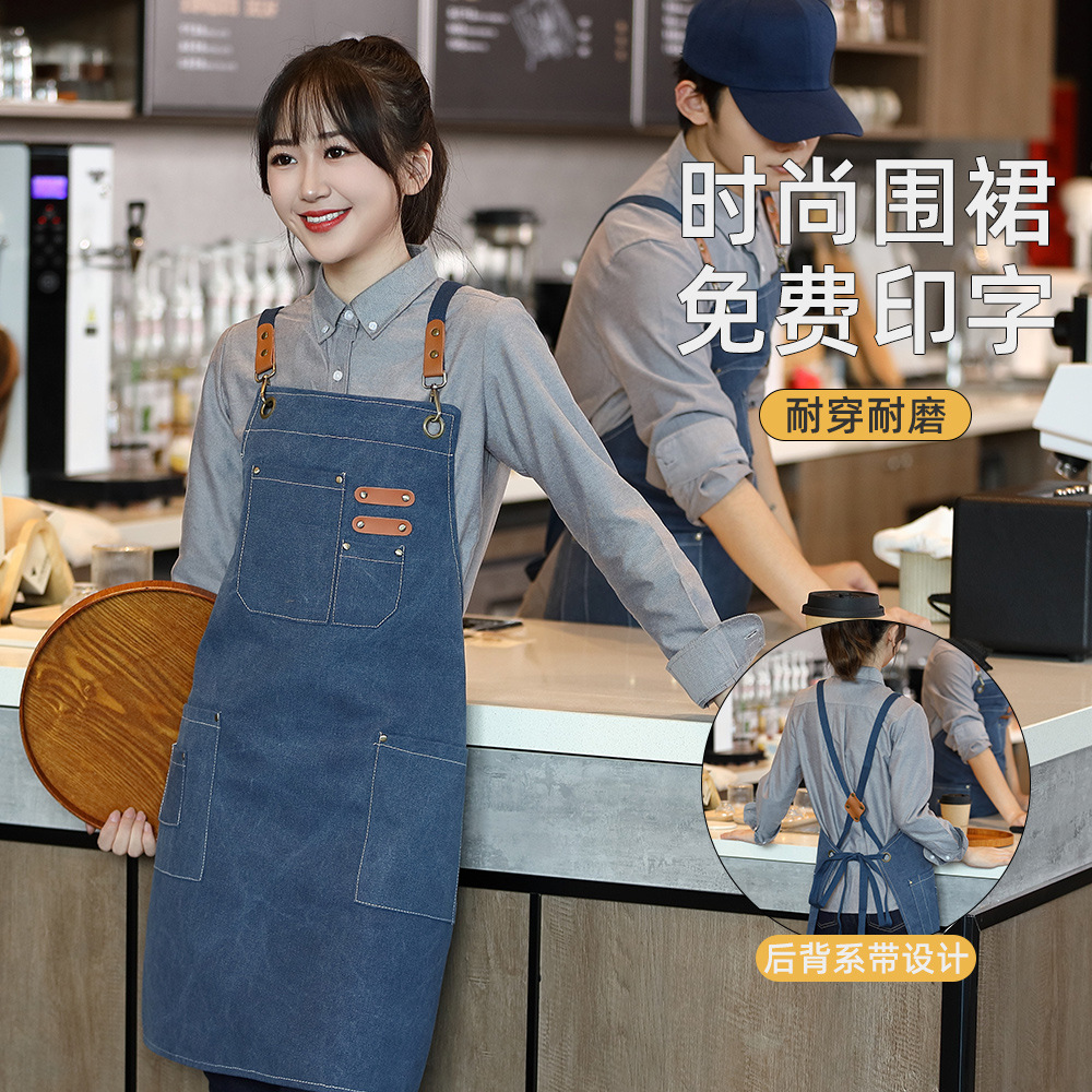 ネットレッドのキャンバスエプロン防水防油夏飲食作業服メーカー卸売りカスタムロゴカフェ