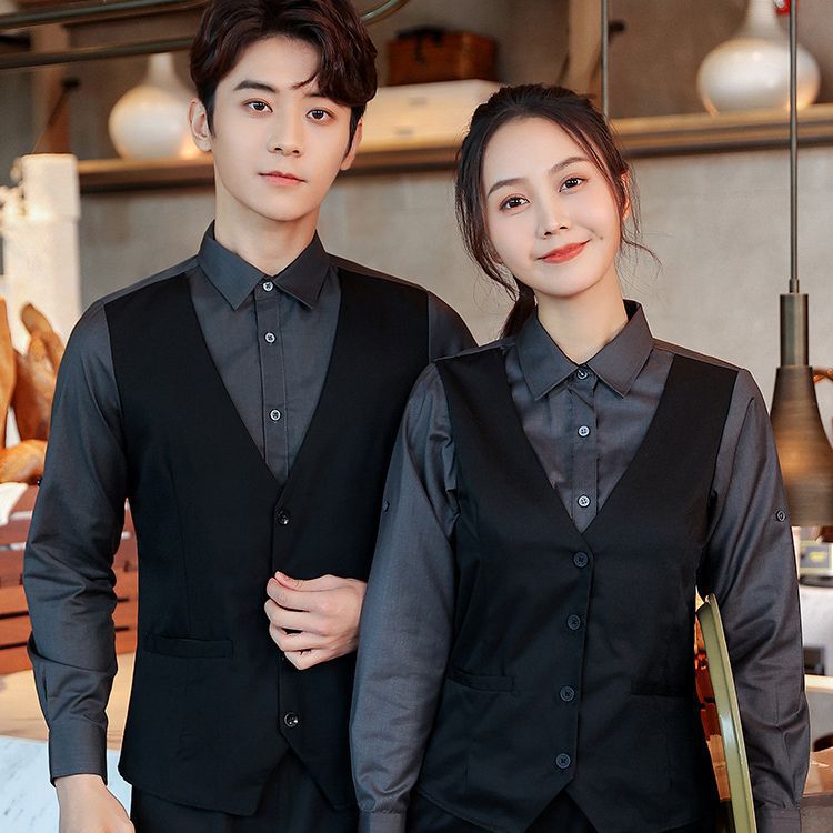 偽二枚の馬甲ウェイター作業服ステーキ店シャツ偽二枚ktv西レストランバー工装セット