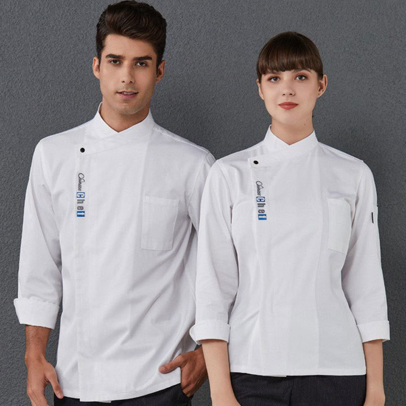 シェフ作業服男性長袖秋冬女性セットホテルキッチンレストラン焙煎店印字ロゴ
