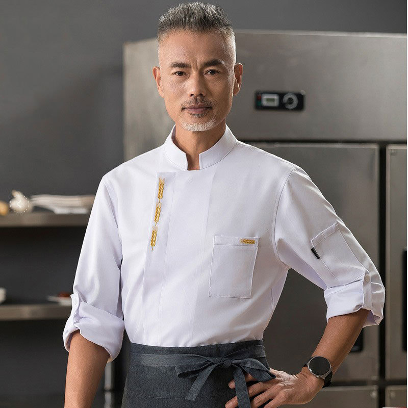 ホテルのレストランのシェフの料理長の作業服の男性の綿布の長袖のホテルの行政の総料理人の秋冬の工装の料理人の服