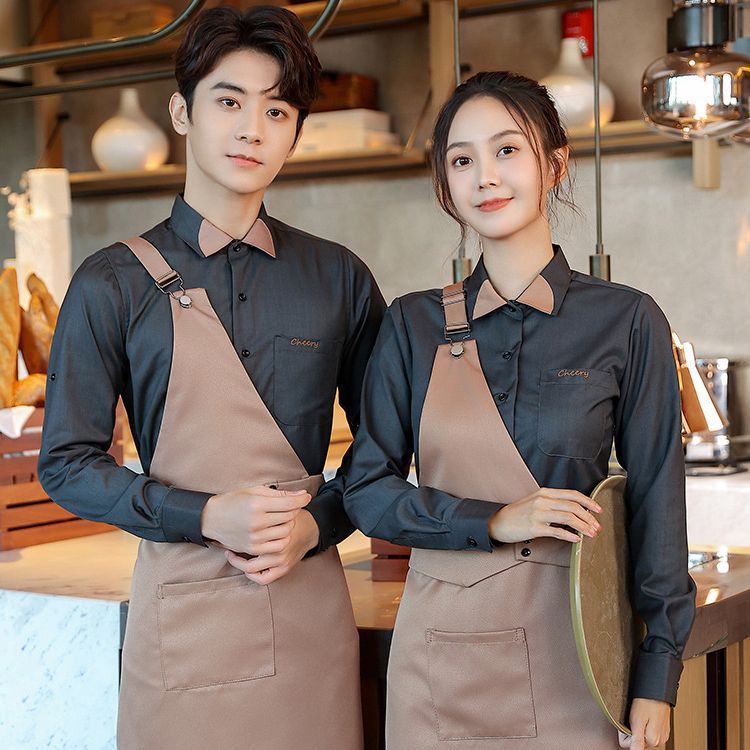 ケーキ屋作業服女性ピザ甘い店シャツ服夏コーヒーミルクティーウェイター長袖男性新製品