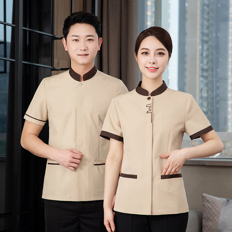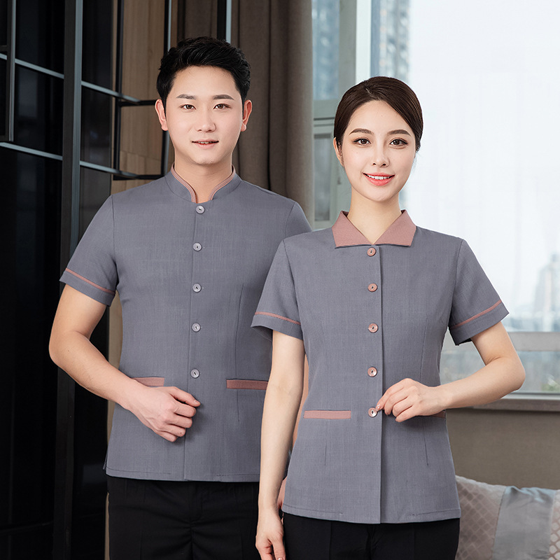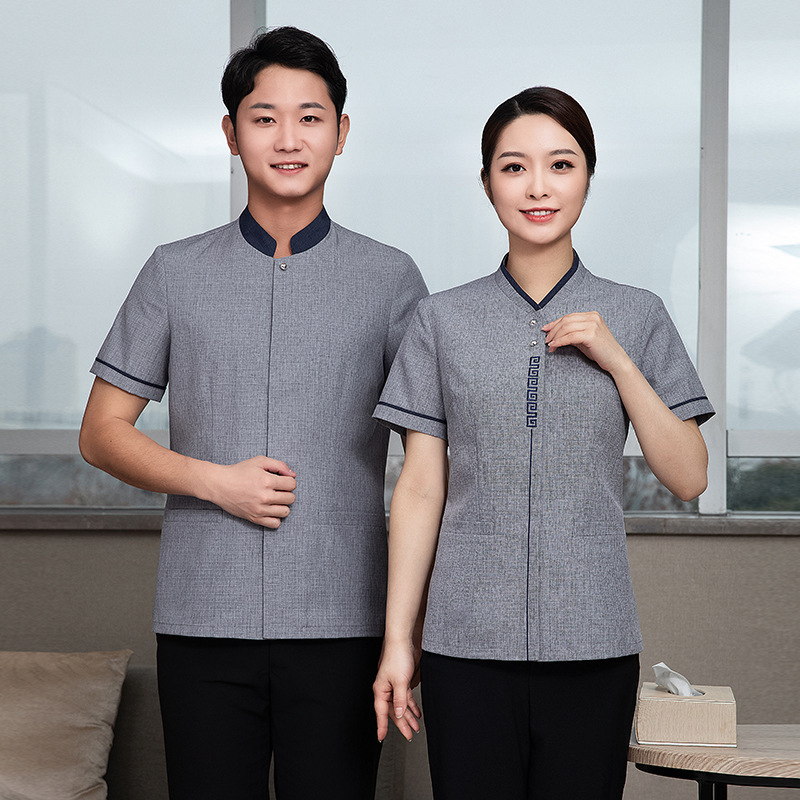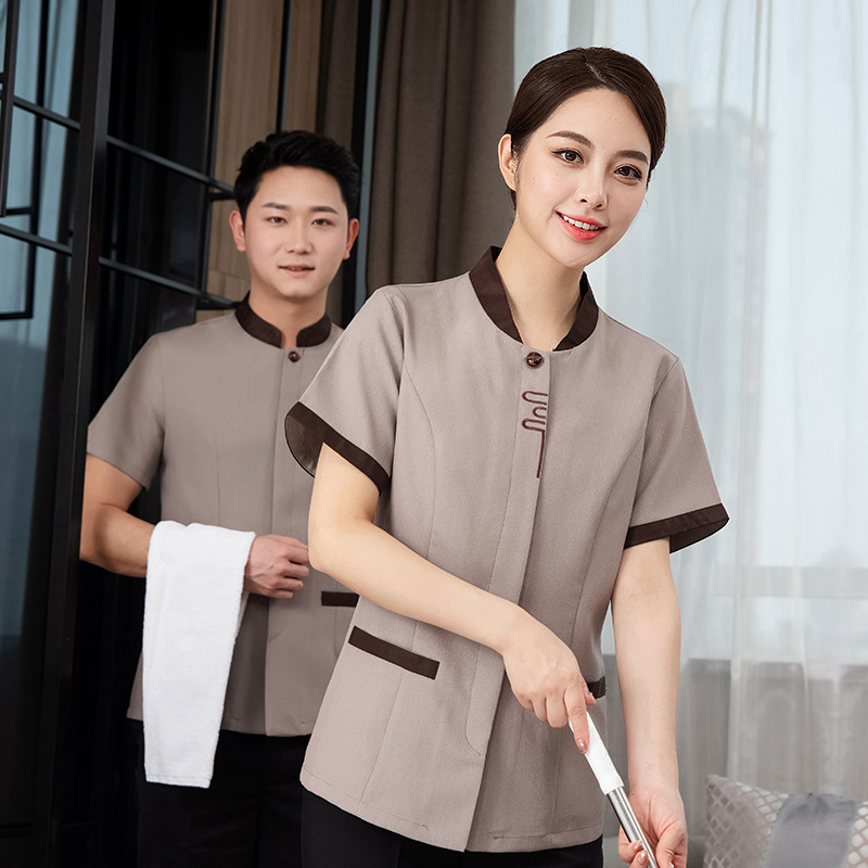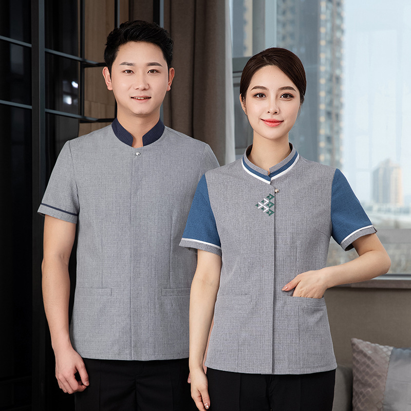 ホテル立襟保潔おばさん作業服女性夏半袖ウェイター清潔ホテル不動産従業員服印字