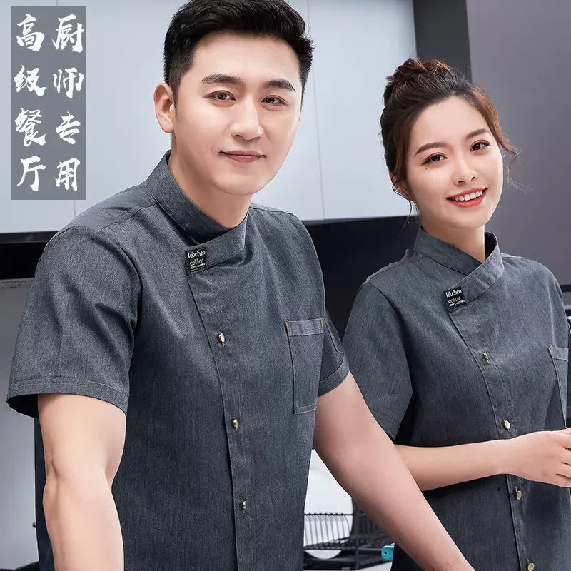 シェフの作業服夏の上着の通気性が薄い男性半袖飲食ホテル食堂後キッチン女性長袖