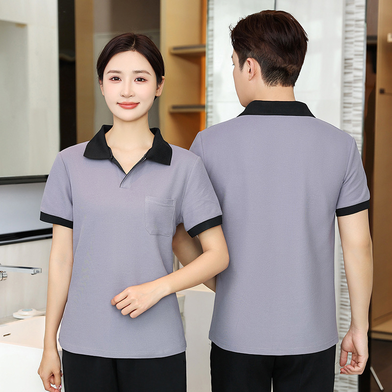 清潔作業服半袖夏襟tシャツ不動産病院ホテル客室清潔おばさん女性刺繍
