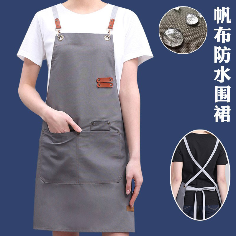 ネット赤夏の新型防水防油長型エプロンカスタムロゴ刺繍印字飲食火鍋店が腰を囲んでいる