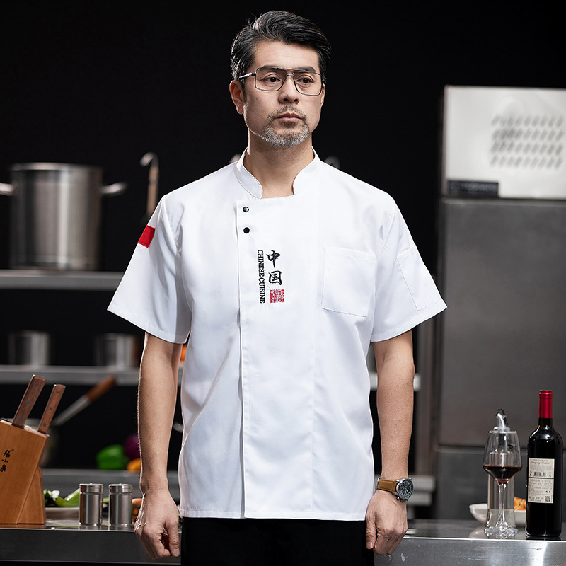 シェフ服夏男女半袖レストランキッチン作業服ケーキ麺点焙煎師工装刺繍