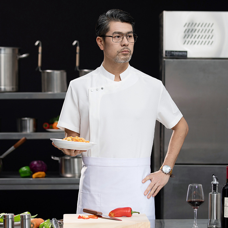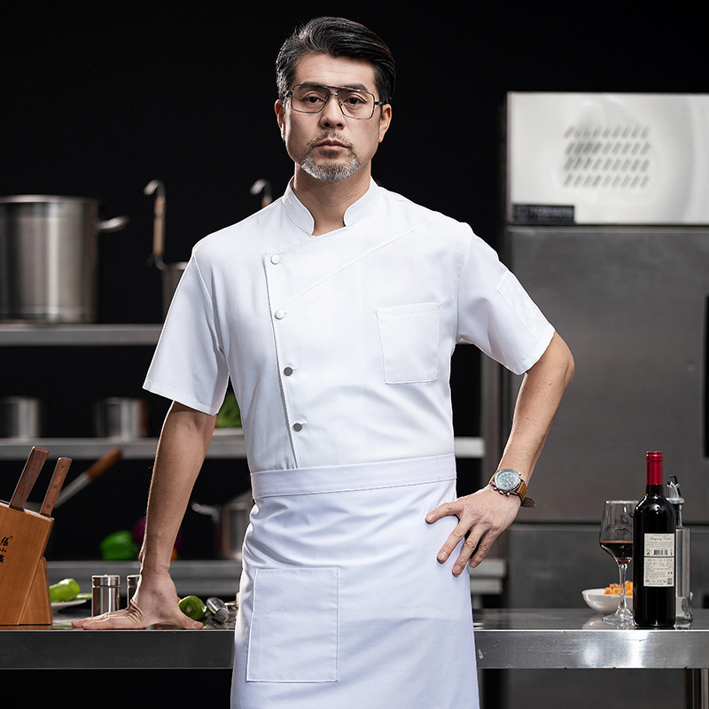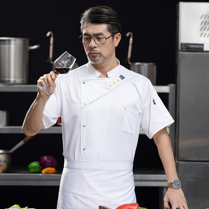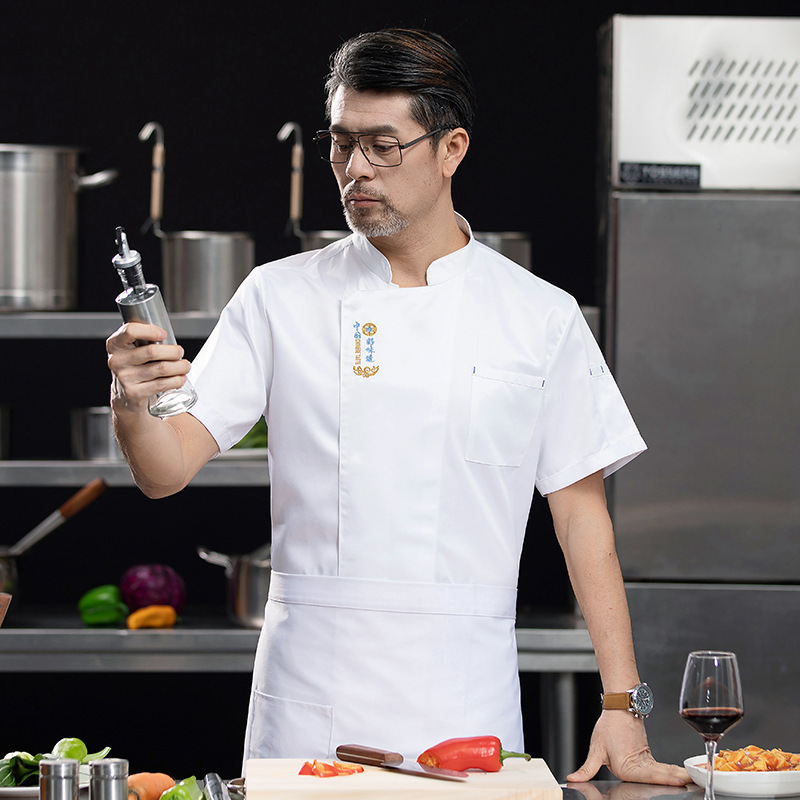 新型レストラン料理長作業服男性半袖行男性半袖行政総料理ホテル春夏白刺繍