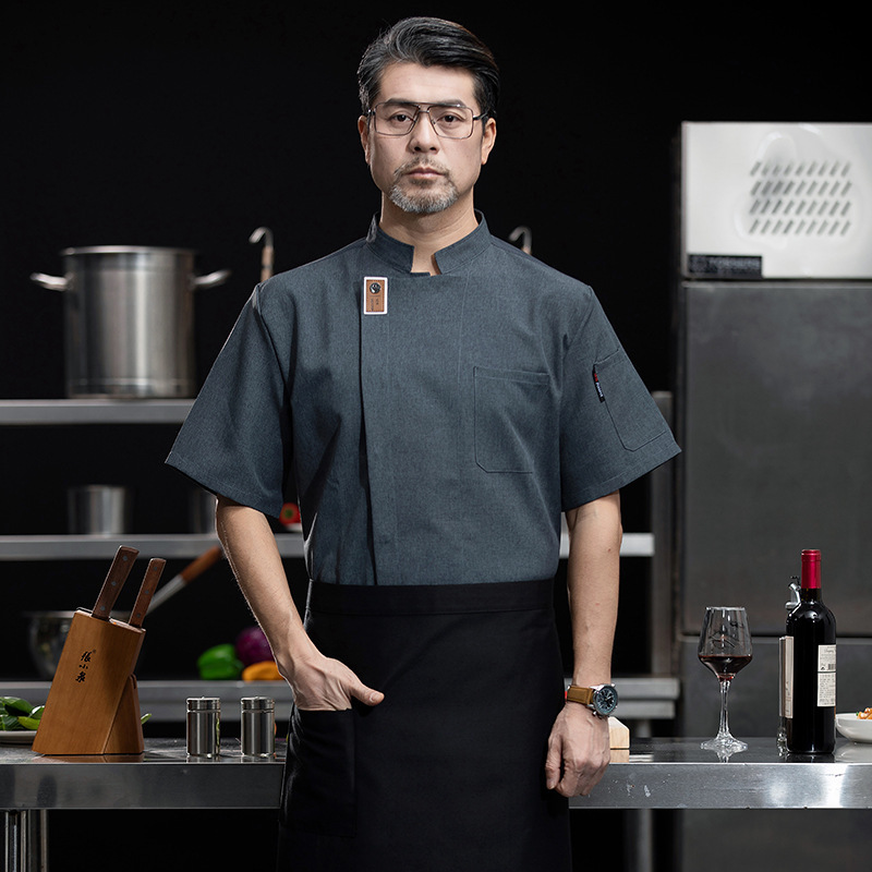 ダイニンググレーシェフ作業服春夏長袖メンズホテルレストランベーカリーキッチン半袖綿布半袖