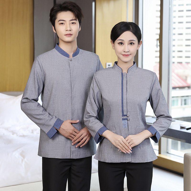 新型の清潔服秋冬服男女ホテル客室の清潔作業服長袖家政不動産paおばさんの刺繍