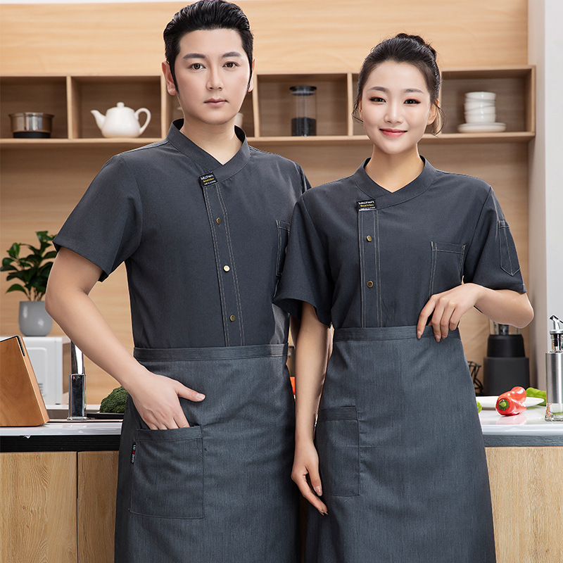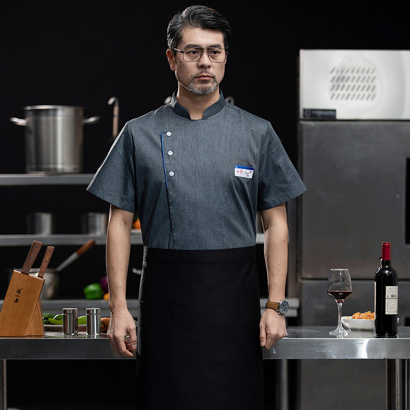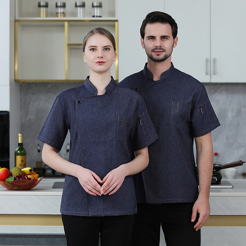 シェフ作業服半袖通気性男カウボーイ青いシェフ服飲食後シェフケーキ店師ホテル夏服女
