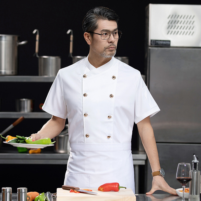 新しいシェフの作業服男性半袖夏の薄い通気性のあるレストランホテルのキッチンレストランの工装