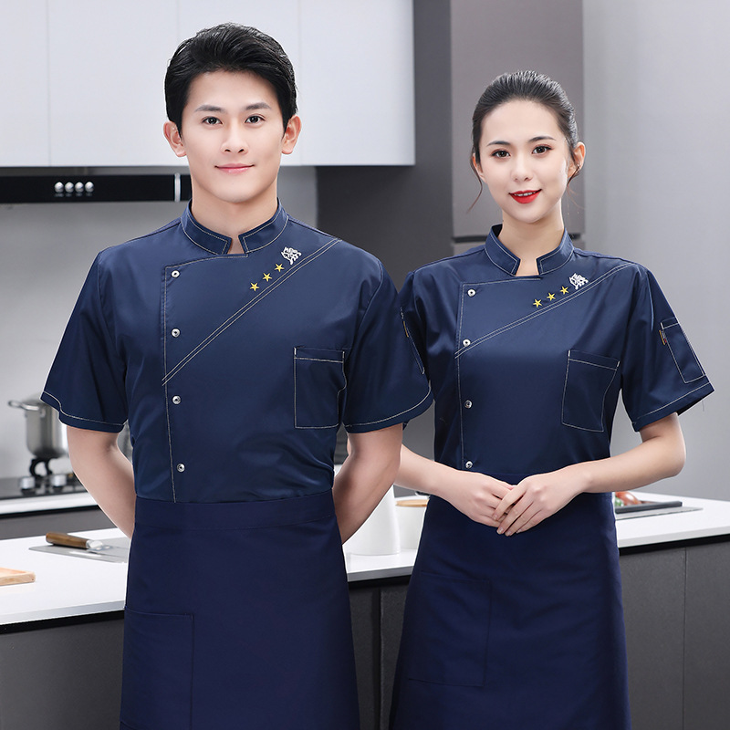 ホテルファッション通気料理人作業服男性半袖焙煎印ロゴ飲食ホテルレストラン焼肉店工装