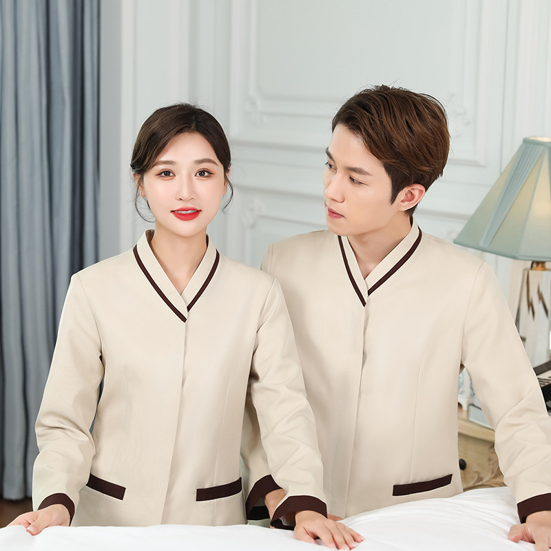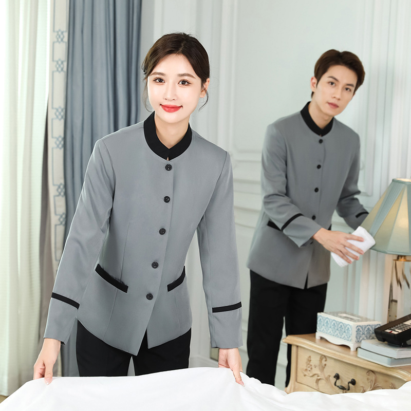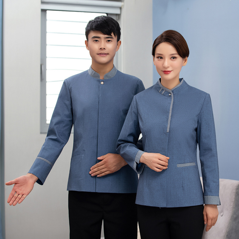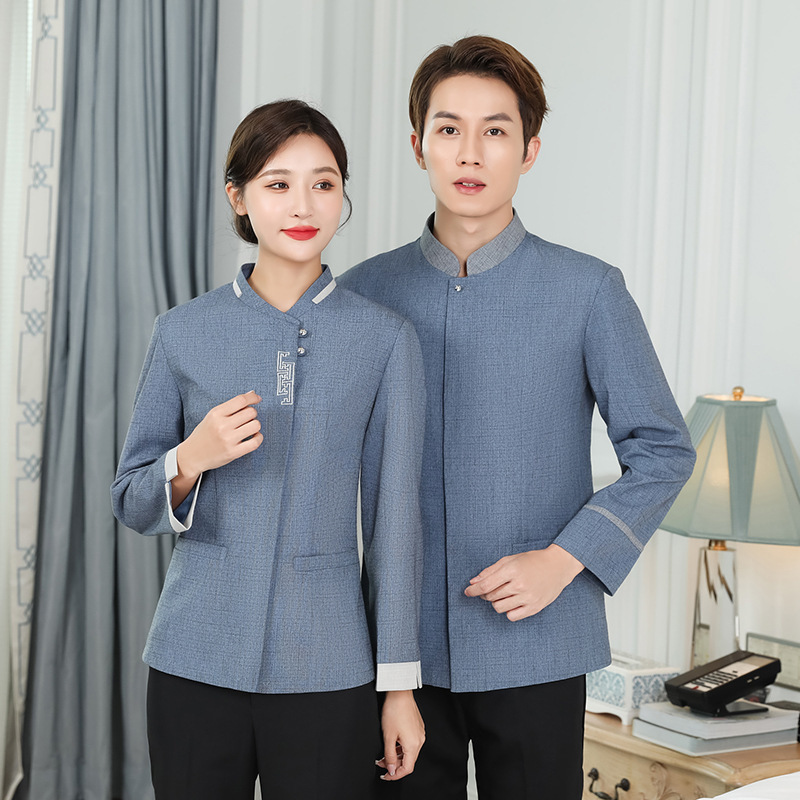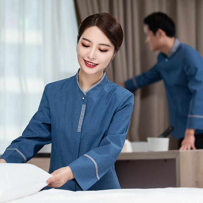ホテルの作業服秋冬服中国式の清潔服長袖の女性の客室の不動産の清潔作業服の亜麻の男性の刺繍
