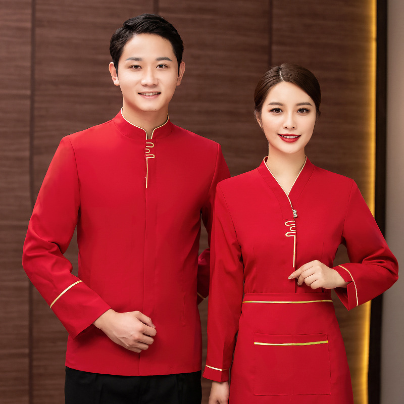 ホテル作業服秋冬服女火鍋店レストランレストラン茶楼中国式従業員長袖男性印字ロゴ