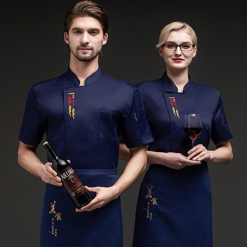 新中華料理人作業服半袖男女夏薄手ホテル飲食鍋焼きケーキ刺繍ロゴ
